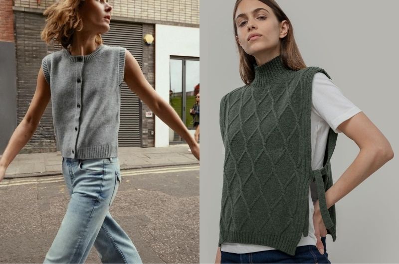 Il gilet non ci abbandona. È partito come capo maschile con bottoni, è diventato top aderente in estate, e ora torna in lana, spesso dritto e con spacchi laterali. Gli spacchi aiutano a renderlo più adattabile, ma non risolvono il problema principale: tiene caldo nel punto sbagliato.