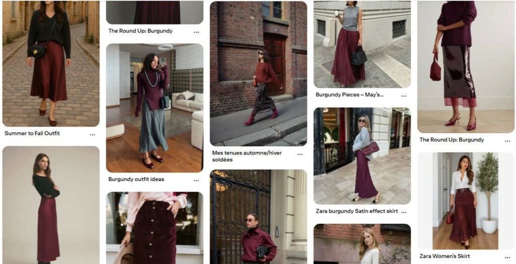 • “Bordeaux skirt ideas”